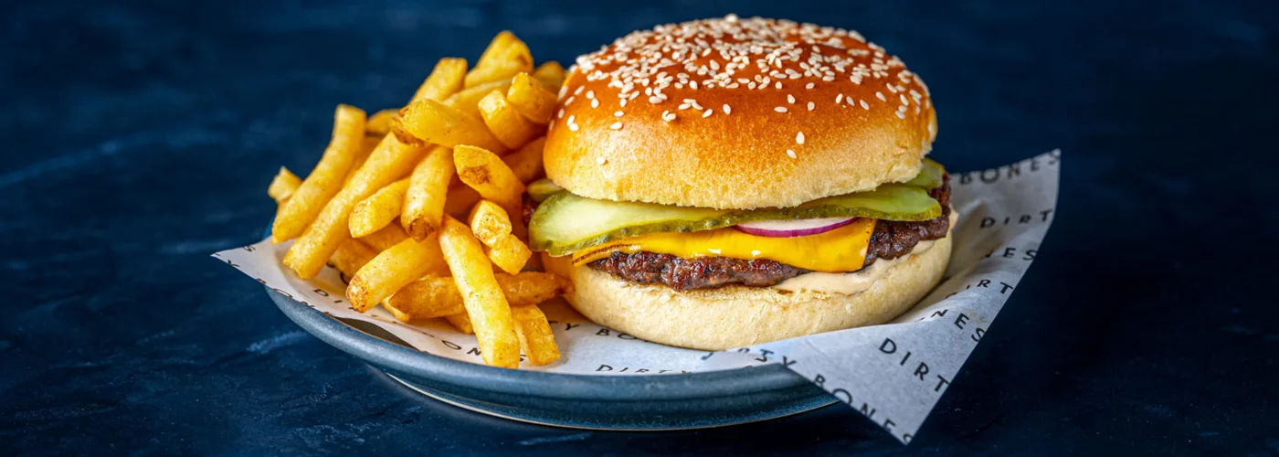 Exclusively for January, Single Patty Burger OR Dirty Chicken Caesar as well as a side of Fries for just £6!